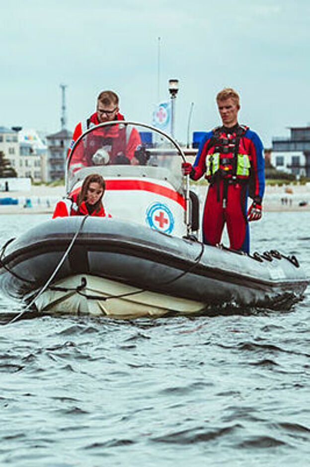 Unsere Rettungskräfte sorgen am Wochenende an der Station Breitehorn für Sicherheit. Mit Booten und Sanitätsraum leisten wir ehrenamtlich Hilfe und klären Badegäste auf.
